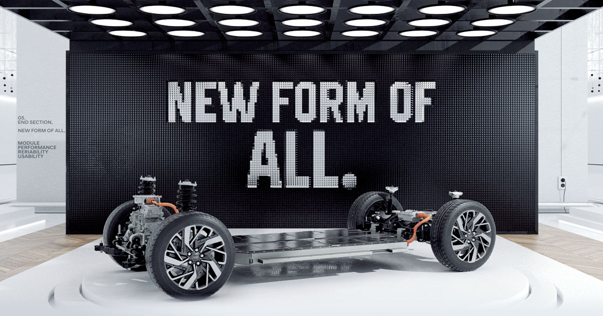 내연기관 자동차나 내연기관 플랫폼을 기반으로 한 전기차와 비교하면 전체적인 비율이 크게 다르고 공간 활용성이 훨씬 커진다.